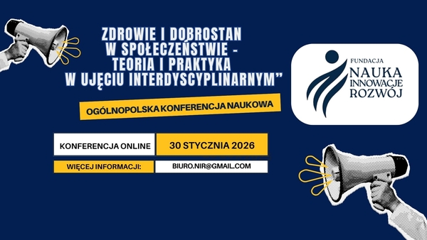 Fundacja Nauka-Innowacje-Rozwój zaprasza na ogólnopolską konferencję naukową pt.: „Zdrowie i dobrostan w społeczeństwie – teoria i praktyka w ujęciu interdyscyplinarnym” 📅 Termin konferencji: 30 stycznia 💻 Forma: online ✅️ do 20.01 – nadsyłanie zgłoszeń