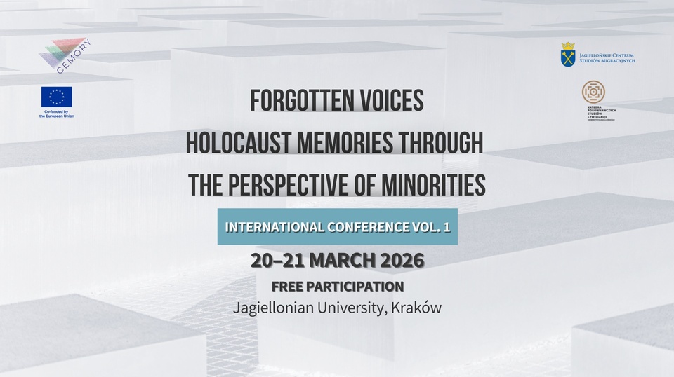 The CEMORY project team at the Jagiellonian University in Kraków (Centre for Comparative Studies of Civilisations) invites Participants to join the "Forgotten Voices. Holocaust Memories Through the Perspective of Minorities" International Conference.